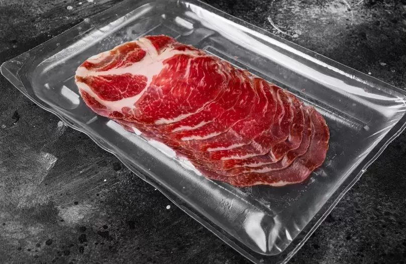 Unsere durchstossfesten Folien verhindern zuverlässig Luftzieher und schützen so vor Produktschäden. Durch die spezielle Flächenversiegelung der Tiefziehmaschine wird das Aussaften wirksam reduziert – ideal für frische Fleischprodukte mit hohen Hygieneanforderungen.
